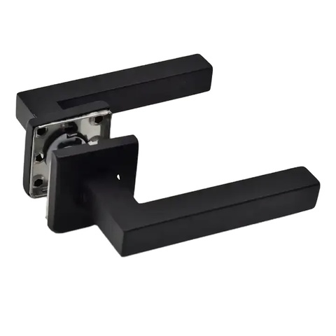 Palanca de manijas de dormitorio interior negra mate cuadrada de aleación de zinc de diseño americano al por mayor para puerta de madera